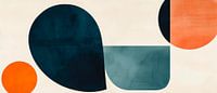 Zachte kleurtinten en harmonieuze vormen komen samen in een modern kunstwerk dat een sfeer van rust en creativiteit uitstraalt. De combinatie van diepblauw, levendig oranje en zachte aardetinten creëert een aantrekkelijk contrast. Ideaal om een vleugje stijl en elegantie toe te voegen aan elke woonkamer.