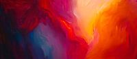 Een vuurwerk van levendige rode en oranje tinten, zachtjes overgaand in diepblauw, ontvouwt zich voor de ogen en geeft een gevoel van warmte en energie. Deze indrukwekkende kleurencombinatie is een uitnodiging om de woonkamer op te vrolijken, waar het creatieve gesprekken kan stimuleren en een uitnodigende sfeer kan creëren.