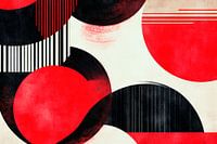 Een fascinerend samenspel van geometrische vormen en krachtige kleuren - felrood contrasteert met diepzwart en zachte rondingen. De harmonieuze opstelling en dynamische lijnen geven de kamer energie en karakter. Ideaal voor een moderne woonkamer, waar het conversatie stimuleert en creatieve inspiratie aanmoedigt.