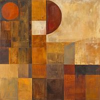 Een indrukwekkend samenspel van kleuren en geometrische vormen dat de essentie van moderne abstracte kunst weergeeft. Het warme kleurenpalet en de strakke lijnen maken dit kunstwerk een ideaal middelpunt voor elke hedendaagse woonkamer of kantoor. Perfect voor liefhebbers van abstracte en minimalistische kunst.