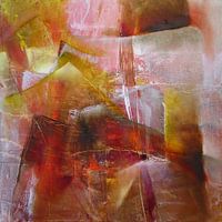 Een krachtige kleurencompositie vol licht en weidsheid, doorschijnend en transparant. Goud en roze, aardse tinten
