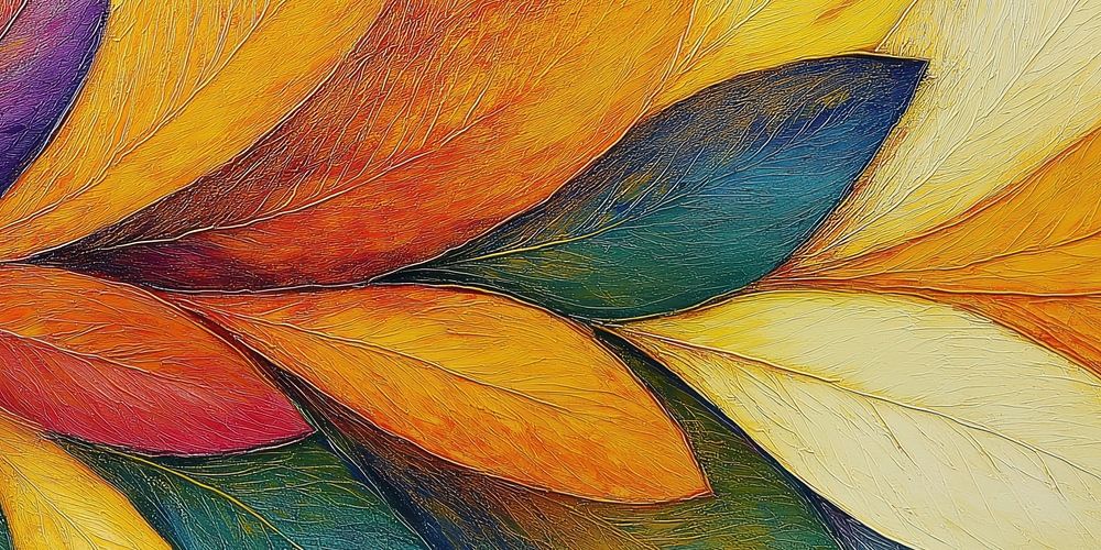 Het blad lijkt te dansen in een zeebries, wat de kijker uitnodigt om dieper in de details te duiken. De speelse interactie tussen de kleuren en vormen maakt dit werk een levendige toevoeging aan elke ruimte. Het is perfect voor wie een frisse en vrolijke sfeer in hun interieur wil creëren, of het nu in de woonkamer, de slaapkamer of een creatieve werkruimte is.