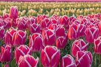 Close-up van paarse tulpen op een bollenveld nabij Nieuwe Tonge op Goeree Overflakkee.
