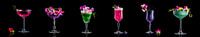 Six colorful cocktails in a row, this is such a beautiful image. De colors are really popping out of the black background. These vintage crystal glasses are so nice, but everything is very chique decorateds with leafs and flowers. This is a picture you really want it. This could be in a kitchen, restaurant or a cocktailbar. Very sharp picture made with flash light. This is an true eyecatcher to hang on your wall. And is deserves to be a big print! And that is possible because this picture is big file with a high resoilution.