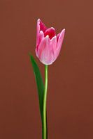 Een roze tulp, in de studio gefotografeerd voor een gekleurde achtergrond.