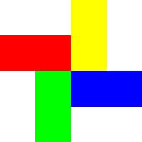 Permutatie met rood, groen, blauw en geel, achtergrond wit