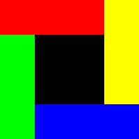 Permutatie aan de rand met rood, groen, blauw en geel (zonder zwart en wit)