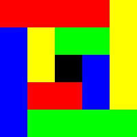 Permutatie met 4 basiskleuren, midden zwart