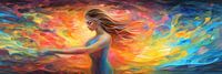 Koop de foto Kleurrijk Abstract Schilderij: Vrouw in Haar Element van Surreal Media op canvas, aluminium dibond, (ingelijste) fotoprint, behang en ArtFrame, op maat geprint in Fine-Art kwaliteit.