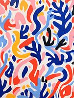De Matisse-invloed ademt een ongedwongen vrolijkheid in dit abstracte patroon, waar elke wending en elke kleurschakering een verhaal van vrijheid en spontane creativiteit vertelt. Dit kunstwerk prikkelt de verbeelding met zijn uitgesproken kleurenpalet en speelse patronen, een viering van de artistieke sprankeling van Matisse in een moderne context.
