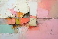 Kleurrijk Abstract - Dit abstracte schilderij toont een levendige mix van kleurvlakken met texturen die met elke penseelstreek een gevoel van rust suggereren, waarbij zachte pasteltonen en scherpere lijnen en breukvlakken elkaar afwisselen.