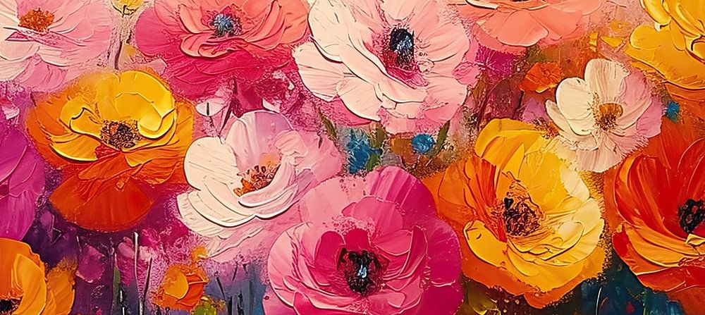 Details: bloemen, schilderij, kleurrijk, canvas, kunst, decoratie, muur, modern, abstract, interieur