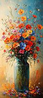 Kleurrijk Bloemenschilderij | Vivid Symphony in Bloom - kleurrijk stilleven schilderij met bloemen in vaas