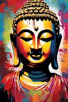 Dit kleurrijke en levendige ontwerp van een Boeddha-portret straalt rust en energie tegelijk uit. De artistieke pop-art stijl maakt gebruik van felle kleuren en gedurfde contrasten, waardoor het ontwerp een moderne en dynamische uitstraling krijgt. Dit kunstwerk kan een bijzondere sfeer toevoegen aan elke ruimte, of het nu een woonkamer, kantoor of meditatieruimte is. Het levendige kleurenpalet en de serene uitdrukking van de Boeddha maken het zowel een eyecatcher als een rustgevend element. Perfect voor liefhebbers van moderne kunst en kleurrijke interieurs. Het ontwerp zal gegarandeerd gesprekken starten en een unieke uitstraling aan elke ruimte geven.