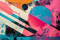 Dit trendy kunstwerk is een levendige en dynamische compositie van abstracte vormen en intense kleuren.