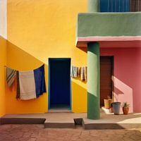 Kleurrijk Mexicaans straatbeeld. Erg leuk voor aan je muur. Dit werk fleurt iedere wand op met kleurencombinaties om verliefd op te worden!