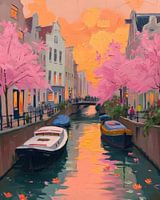 Kleurrijk Nederland. Een vrije interpretatie van de lente en zomer in Nederland. Met veel kleur en leven aan de gracht. Het zou in Amsterdam, maar bijvoorbeeld ook in Utrecht kunnen zijn.