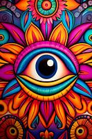 Ontdek Kleurrijk Oog van Inspiratie, een levendig kunstwerk dat de essentie van moderne kunst en popart belichaamt. Dit design, met zijn gedurfde kleuren en dynamische compositie, is een echte blikvanger in elke ruimte, van woonkamer tot kantoor. Met een hypnotiserend centraal oog omringd door speelse bloemen, creëert het ontwerp een…