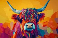 Dit opvallende en kleurrijke portret van een Schotse hooglander is een echte blikvanger. Het kunstwerk, dat gebruik maakt van levendige tinten rood, blauw, geel, oranje en paars, geeft een moderne en speelse draai aan een klassiek dierlijk onderwerp. Ideaal voor wie zijn interieur wil opvrolijken met iets unieks, deze print past perfect in zowel de woonkamer, slaapkamer als kantoorruimte. Door de eclectische Pop Art-stijl brengt het kunstwerk niet alleen kleur maar ook karakter en een vleugje humor in elke ruimte.
