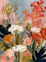 Een vrolijk veldboeket met frisse en kleurrijke bloemen, geschilderd in een levendige stijl.