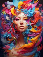 "Kleurrijk Vortex" is een explosie van kleur en creativiteit, die de kijker meeneemt op een visuele reis van verbeelding en schoonheid. Het middelpunt is een vrouwelijk gezicht omgeven door een wervelwind van levendige tinten; van hemelsblauw en zacht roze tot zonnegeel en vurig oranje. Deze kunstwerken combineren de sereniteit van de afgebeelde expressie met de dynamiek van de rondom vloeiende kleuren. Dit stuk zou perfect passen in een modern, minimalistisch of zelfs eclectisch interieur waar het als een opvallend middelpunt kan dienen. Het brengt leven in elke ruimte en stimuleert een sfeer van creativiteit en inspiratie.