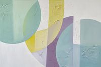 Dit abstracte ontwerp is een perfecte aanvulling voor moderne interieurs. Met subtiele tinten van geel, blauw, paars en groen, in combinatie met geometrische vormen zoals cirkels en halve cirkels, straalt dit schilderij een minimalistische en eigentijdse uitstraling uit. De zachte kleuren en organische vormen zorgen voor een rustgevende sfeer, ideaal voor in de slaapkamer of het kantoor. De speelse overlapping van cirkels voegt diepte toe aan het werk, terwijl de texturen zorgen voor een subtiele dynamiek. Dit schilderij past goed in ruimtes waar balans en rust worden gewaardeerd, en het kan eenvoudig worden gecombineerd met verschillende decoratiestijlen.