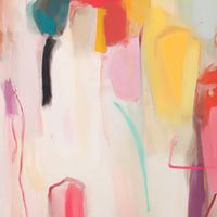 Kleurrijk abstract in warme kleuren met wit. MIxed media: acrylverf gecombineerd met krijt. Lente vibes!