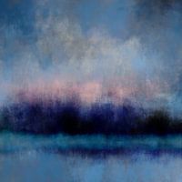 Abstract digitaal aquarel minimalistisch landschap in zachte pastelkleuren.