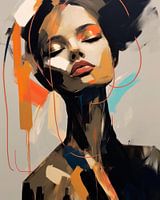Kleurrijk abstract portret in oranje, blauw, bruin en zwarttinten. Een blikvanger aan je muur! Kies zelf de afmetingen en het materiaal en maak het helemaal naar jouw wens.