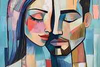 Dit prachtige schilderij toont de intimiteit tussen twee gezichten die in elkaar overlopen, weergegeven in een stijlvol abstract ontwerp. Met opvallende kleuren zoals blauw, roze en beige, straalt het kunstwerk een moderne en levendige energie uit. Dit schilderij voegt een gevoel van warmte en verbondenheid toe aan elke ruimte. Perfect voor slaapkamers of kantoren, waar het de sfeer een persoonlijk en romantisch tintje geeft. De kubistische stijl zorgt ervoor dat het niet alleen een sfeervolle maar ook een kunstzinnige toevoeging is voor elke muur.