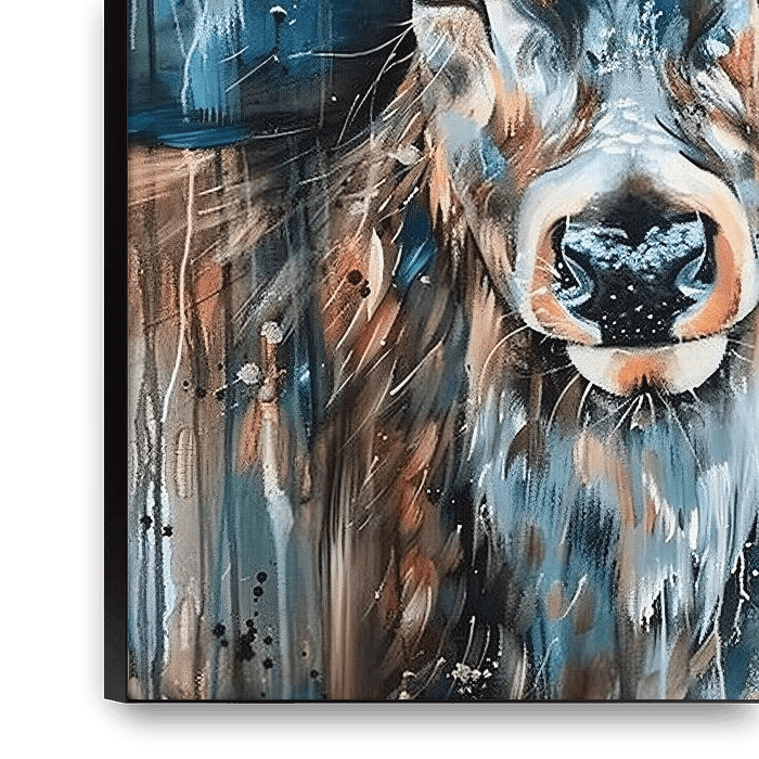 Dit prachtige kunstwerk toont een hert in een abstracte, kleurrijke stijl die onmiddellijk de aandacht trekt. De dynamische mix van blauwe, oranje, witte en bruine tinten zorgt voor een levendig en eigentijds gevoel, perfect voor elke moderne inrichting. De details van het hert, gecombineerd met de abstracte achtergrond, creëren een…