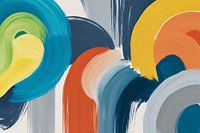 Dit kunstwerk laat een prachtig spel van kleuren en beweging zien met levendige borstelslagen die een gevoel van dynamiek en energie oproepen. De vloeiende overgangen van oranje, blauw en geel creëren een boeiend visueel ritme dat een moderne en eigentijdse uitstraling heeft. Het ontwerp is perfect om een ruimte op te fleuren en kan een fantastische toevoeging zijn aan een slaapkamer of kantooromgeving. De abstracte vormen bieden ruimte voor interpretatie en voegen een unieke artistieke flair toe aan elk interieur. De expressieve penseelstreken maken dit stuk ideaal voor liefhebbers van moderne kunst die graag een kleurrijke en speelse touch willen toevoegen aan hun omgeving.