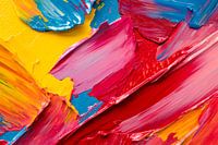 Een opwindend kleurenspel ontvouwt zich in levendige roodtinten, levendig blauw en stralend geel. De dynamische penseelstreken brengen beweging en energie over en boeien de kijker. Perfect voor een moderne woonkamer of een creatieve keuken, dit kunstwerk brengt leven en inspiratie in elke kamer.