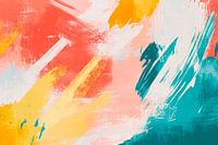Een dynamisch samenspel van warme koraal- en levendige turquoise tinten ontvouwt zich in energieke penseelstreken. Deze levendige kleurencompositie verspreidt een sfeer van levensvreugde en creativiteit. Perfect voor een woonkamer, brengt het kracht en inspiratie in elke kamer en voegt het een vrolijk accent toe.