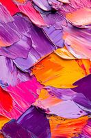 Een fascinerend samenspel van levendige kleuren ontvouwt zich in een harmonieuze chaos van gedurfde penseelstreken. De dieppaarse en felle oranje en roze tinten geven elke muur een vrolijk tintje en nodigen uit tot creativiteit. Dit kunstwerk is ideaal voor een moderne woonkamer of een inspirerende studeerkamer, waar het energie en levensvreugde uitstraalt.
