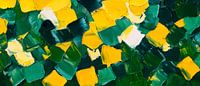 Een levendig samenspel van levendige groene tinten, afgewisseld met stralend geel en zachte witte nuances, wekt de indruk van een zonovergoten tuin. Deze energieke compositie brengt frisheid en levensvreugde in de keuken en verandert die in een inspirerende ruimte voor culinaire creaties en gezellige samenkomsten.