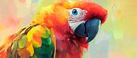Een kleurrijk verenkleed van rijk rood, helder geel en levendig groen ontvouwt zich in al zijn glorie. De diepe uitstraling van de papegaai trekt ieders aandacht en geeft elke kamer een exotisch tintje. Ideaal voor in de woonkamer, waar hij levenslust en avontuur opwekt.
