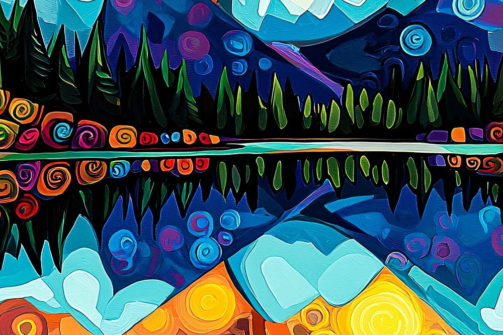 Dit opvallende ontwerp straalt energie en levendigheid uit met zijn kleurrijke weergave van een berglandschap bij zonsopgang. De heldere kleuren en dynamische patronen zorgen voor een unieke sfeer die elke ruimte direct opfleurt. Het schilderij combineert abstracte en natuurlijke elementen, waardoor het een veelzijdige decoratie is. Ideaal voor woonkamers, kantoren of hobbykamers. Deze wanddecoratie biedt niet alleen een prachtige visuele aantrekkingskracht, maar ook een gevoel van rust en inspiratie. Perfect voor liefhebbers van moderne en eclectische stijlen.