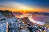 Dit zijn de top momenten om te beleven of om van te dromen. De foto is midden in de nacht gemaakt vanaf een bergtop in Noorwegen. Het nachtelijke klimwerk werd beloond met een fraai uitzicht over de fjorden en het plaatsje Husøy op het kleine eilandje. De lucht zat vol kleur en het was fantastisch om bij dit heerlijke licht over de bergen heen te kijken.