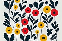 Kleurrijk bloemenpatroon in de stijl van Marimekko.