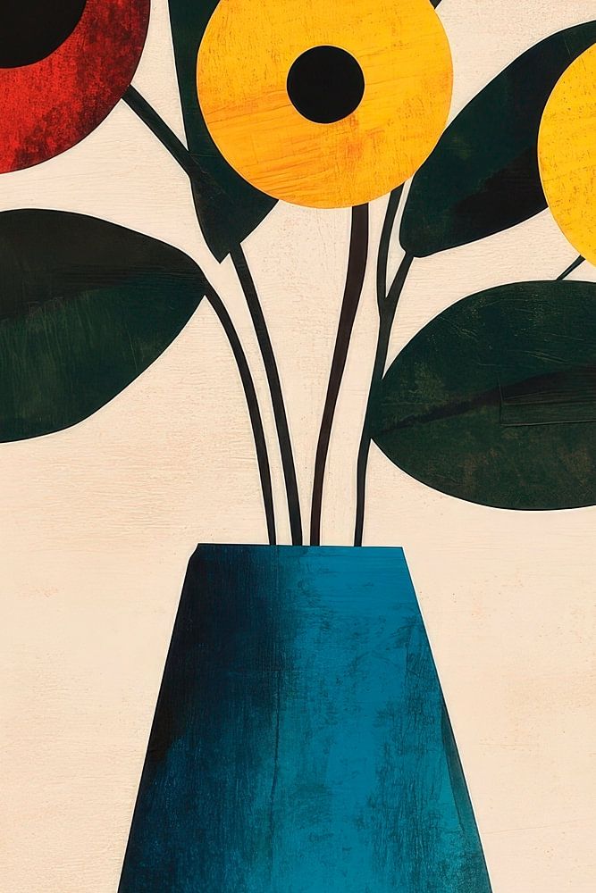 Levendige kleuren ontvouwen zich in een harmonieus samenspel van rood, geel en groen, terwijl de gestileerde vaas een moderne esthetiek uitstraalt. Deze tijdloze compositie voegt een vleugje frisheid en optimisme toe aan elke kamer. Ideaal voor in de woonkamer, waar het een gesprek stimuleert en een uitnodigende sfeer creëert.