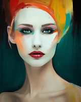 Kleurrijk close-up portret van een jonge vrouw met felle make-up. Kies zelf het formaat en materiaal bij deze blikvanger en maak het helemaal passend voor jouw interieur.
