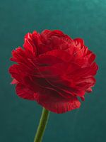 Koop dit bloemen kunstwerk Kleurrijk contrast: Rode Ranonkel met petrol kleurige achtergrond van Marjolijn van den Berg als print op canvas, aluminium dibond, (ingelijste) fotoprint, behang en ArtFrame. Voor jou op maat geprint in Fine-Art kwaliteit.