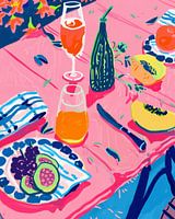 Kleurrijk en modern stilleven van een tafel met fruit. Kies zelf het formaat en materiaal bij dit werk en maak er een echte blikvanger met een zomers tintje van!
