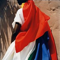 Kleurrijk en verrassend "Colorful fashion". Dit verrassende werk fleurt iedere muur op. Een niet alledaags beeld vol kleur: we zien een vrouw met kleurrijke kleding in een natuurlijke omgeving.