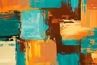 Levendige kleurblokken in warme aardetinten en koele blauwe accenten voegen leven en energie toe aan elke kamer. De dynamische compositie weerspiegelt creativiteit en frisheid, ideaal voor een lichte woonkamer of een inspirerende keuken. Dit kunstwerk nodigt letterlijk uit tot ontspannen en genieten en creëert een harmonieuze sfeer.