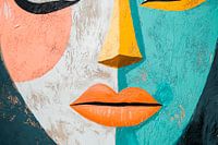 Een krachtig portret dat speelt met felle kleuren en gedurfde vormen. De harmonieuze combinatie van zachte en intense tinten creëert een fascinerende diepte. Ideaal voor een woonkamer, waar het kan schitteren als een centrale blikvanger en een levendig gesprek kan stimuleren. De gestileerde trekken betoveren iedereen.
