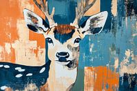 Dit opvallende kunstwerk combineert abstracte en figuratieve elementen in een levendige Popart-stijl. Het hert in het ontwerp springt direct in het oog met zijn krachtige blik, omlijst door een dynamisch kleurenpalet van blauw, oranje en beige tinten. De speelse en moderne uitstraling maakt dit kunstwerk perfect voor interieurs die een…