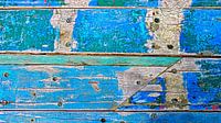 Verweerde houten planken gedeeltelijk in kleur geschilderd