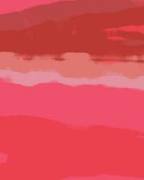 Kleurrijk landschapschilderij in heldere warme neon- en pastelkleuren.